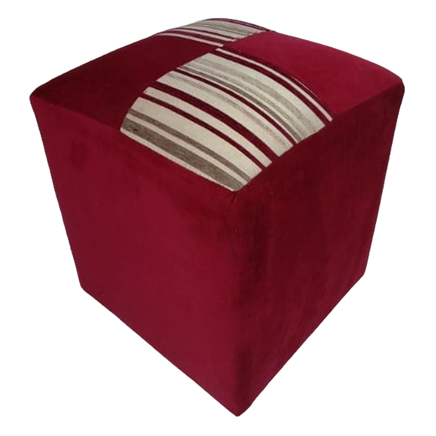 El Pouf Felpa Compose presenta una estructura cúbica que aporta un diseño moderno y minimalista, combinando líneas limpias con una tapicería de felpa que añade un toque de calidez y elegancia. Disponible en colores chocolate, azul y burdeo, se adapta a distintos estilos decorativos, desde ambientes clásicos hasta modernos. Su cubierta superior presenta un acabado con detalles en rayas que añaden un contraste sofisticado, realzando la estética del mueble.
