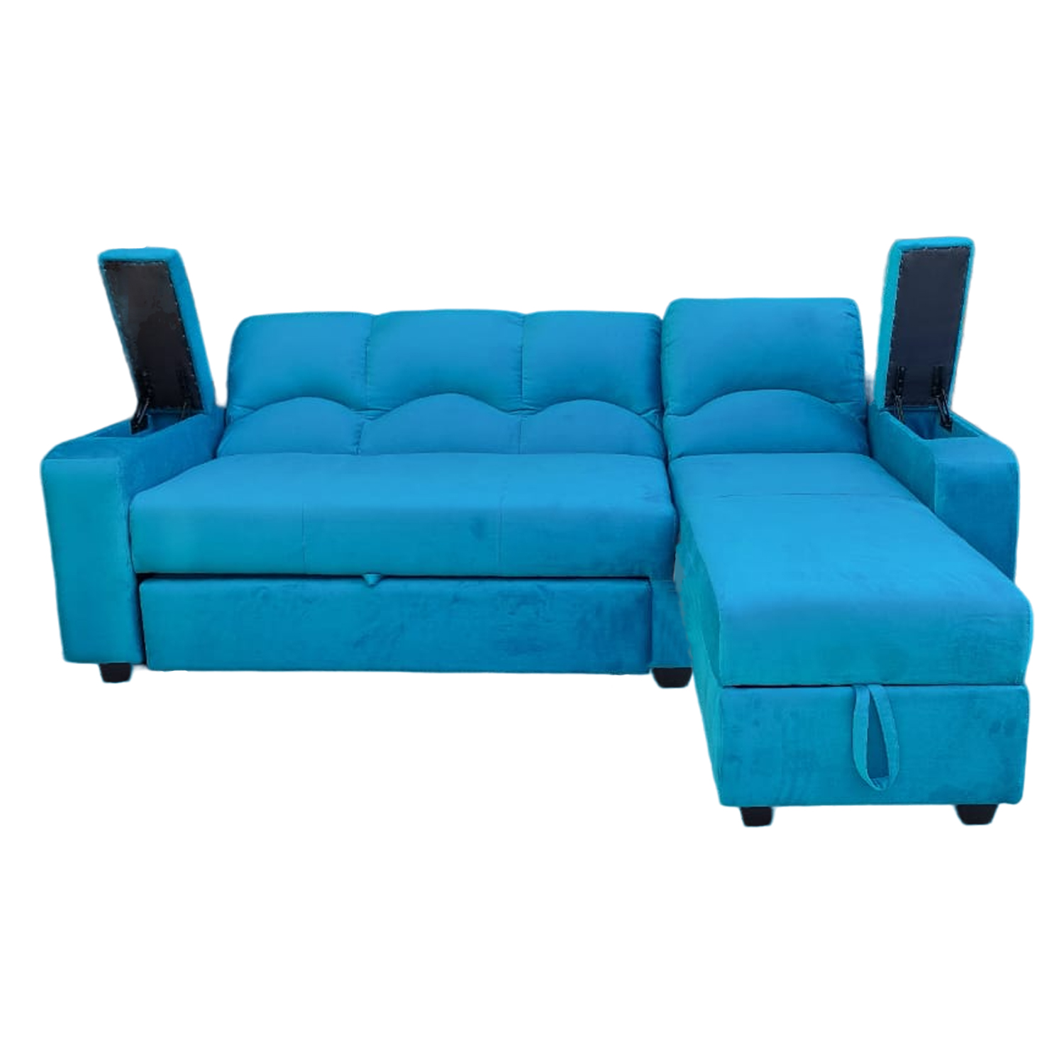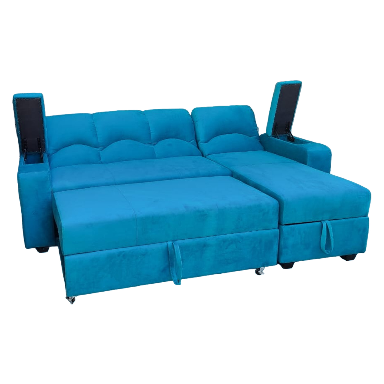 SECCIONAL CAMA BAUL FUNCIONAL 2 PZ DECO FELPA TURQUEZA DERECHO