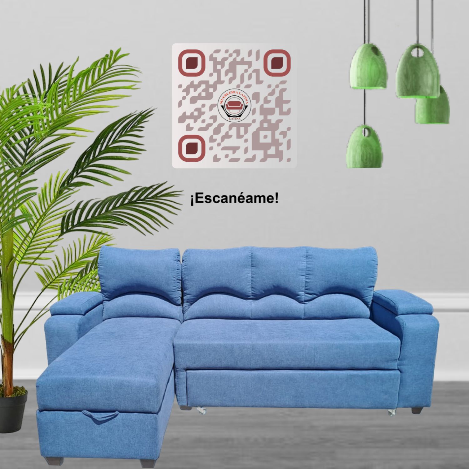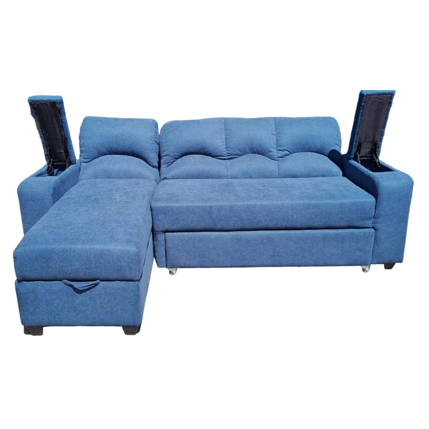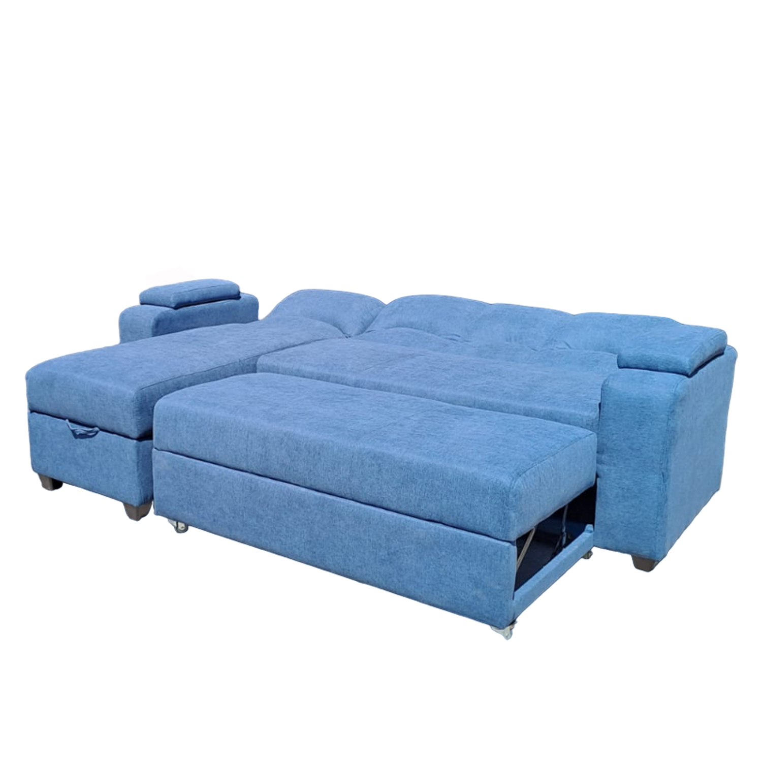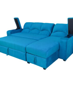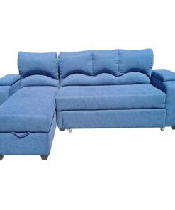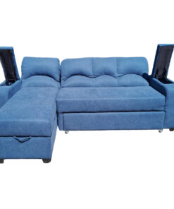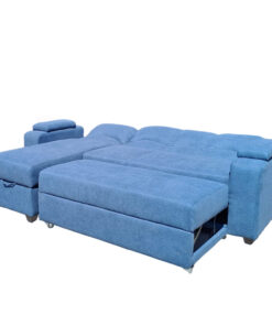 SECCIONAL CAMA BAUL FUNCIONAL 2 PZ DECO LINO AZUL IZQUIERDO