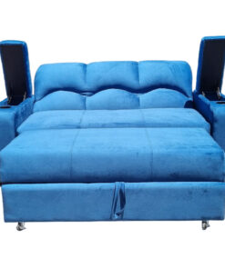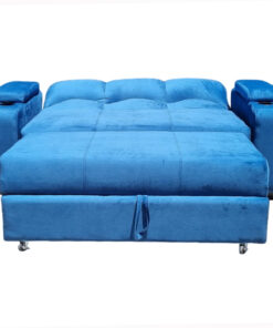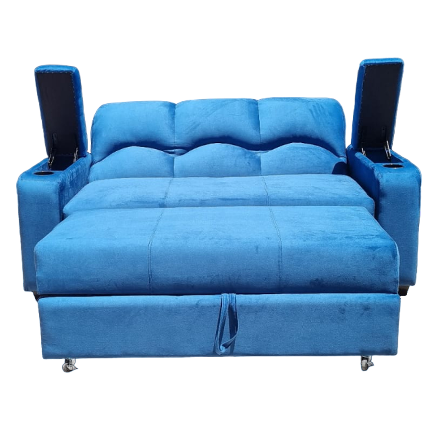 SOFA CAMA FUNCIONAL 2 PZ DECO FELPA AZUL PETROLEO CON POSAVASO