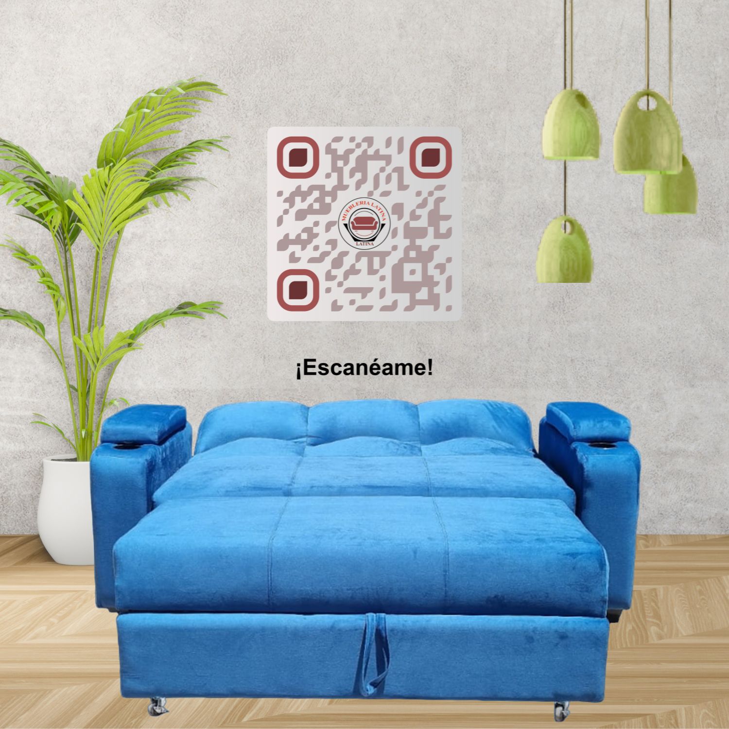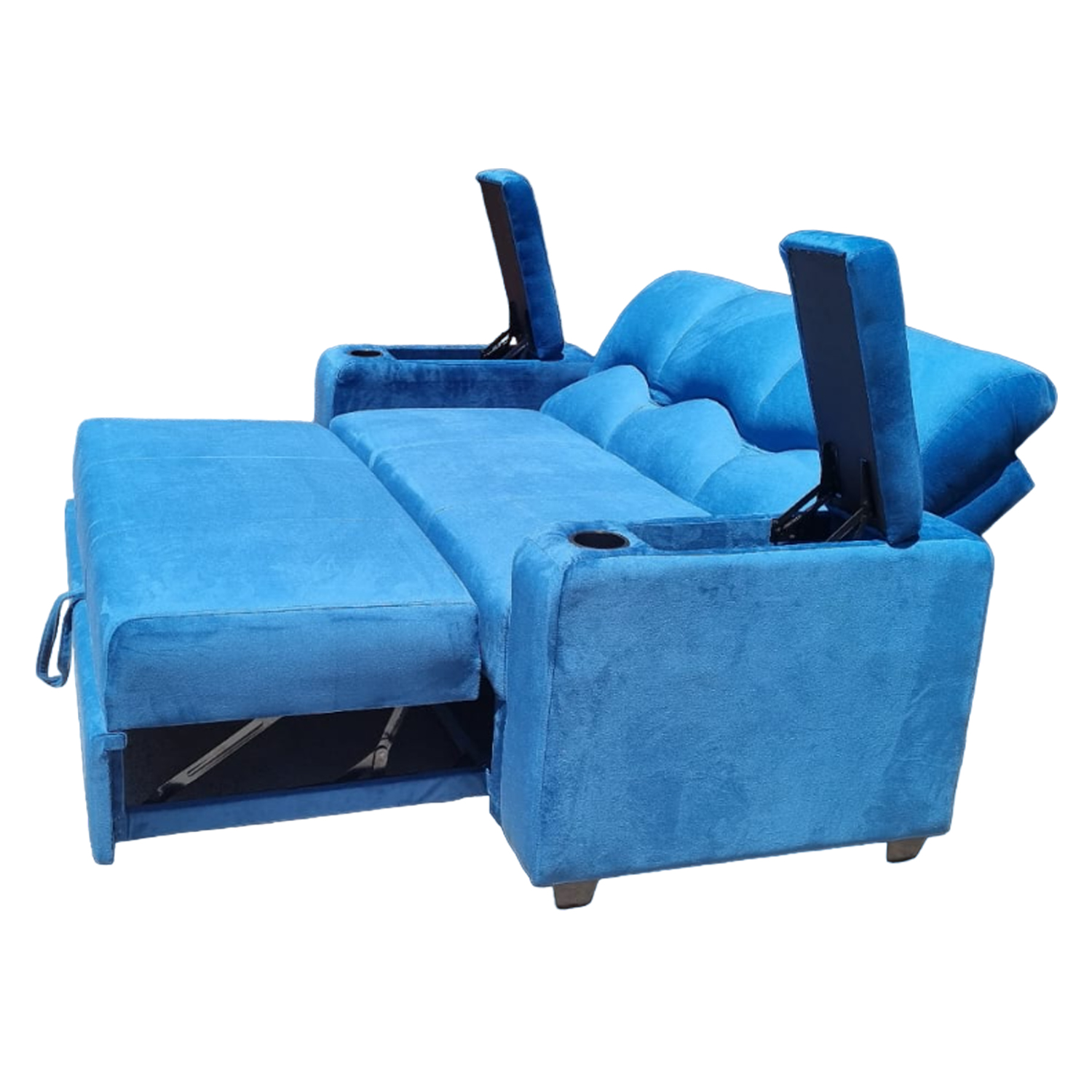 SOFA CAMA FUNCIONAL 2 PZ DECO FELPA AZUL PETROLEO