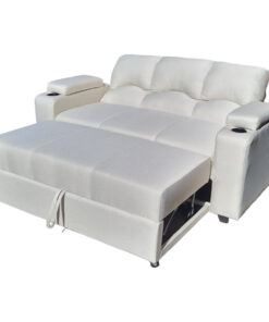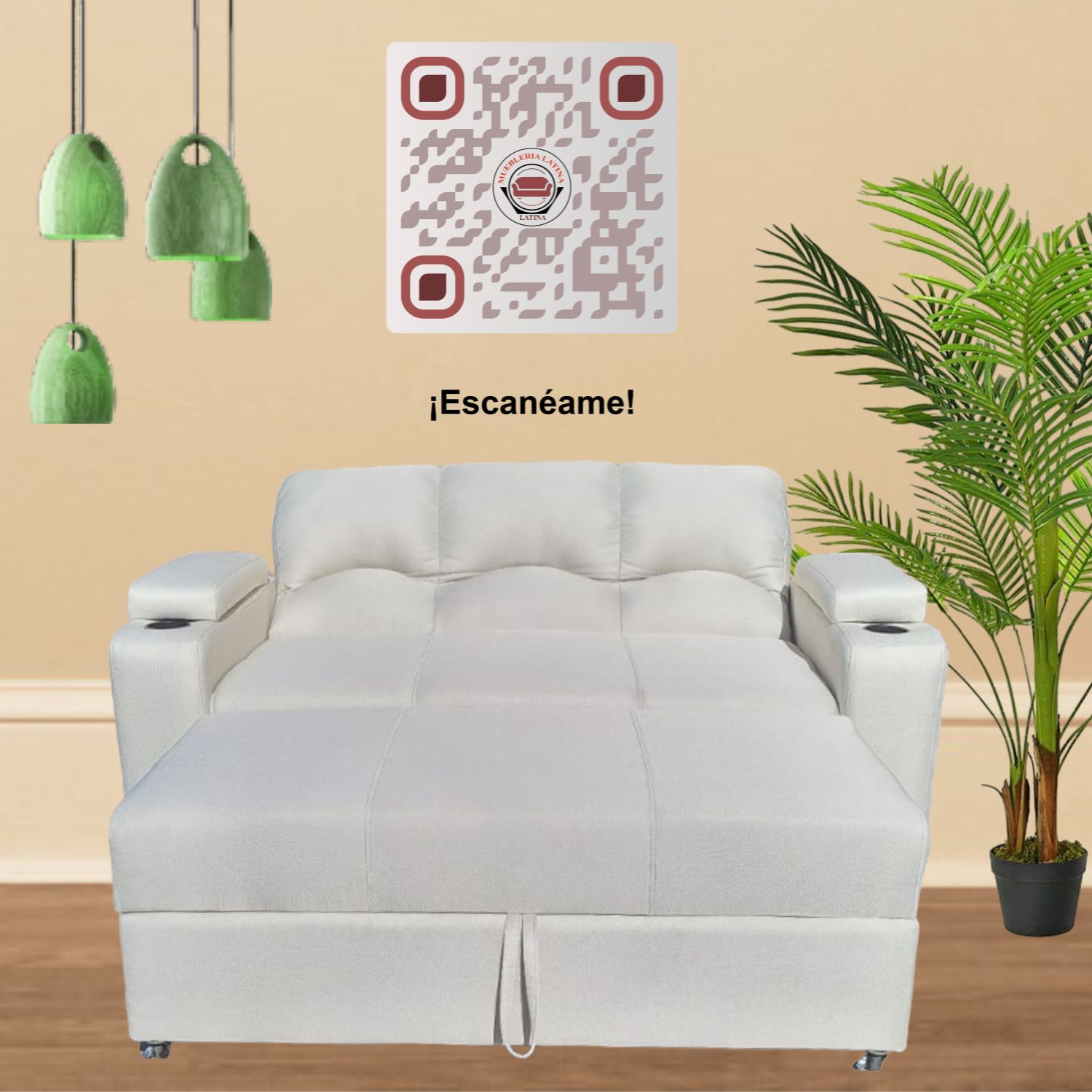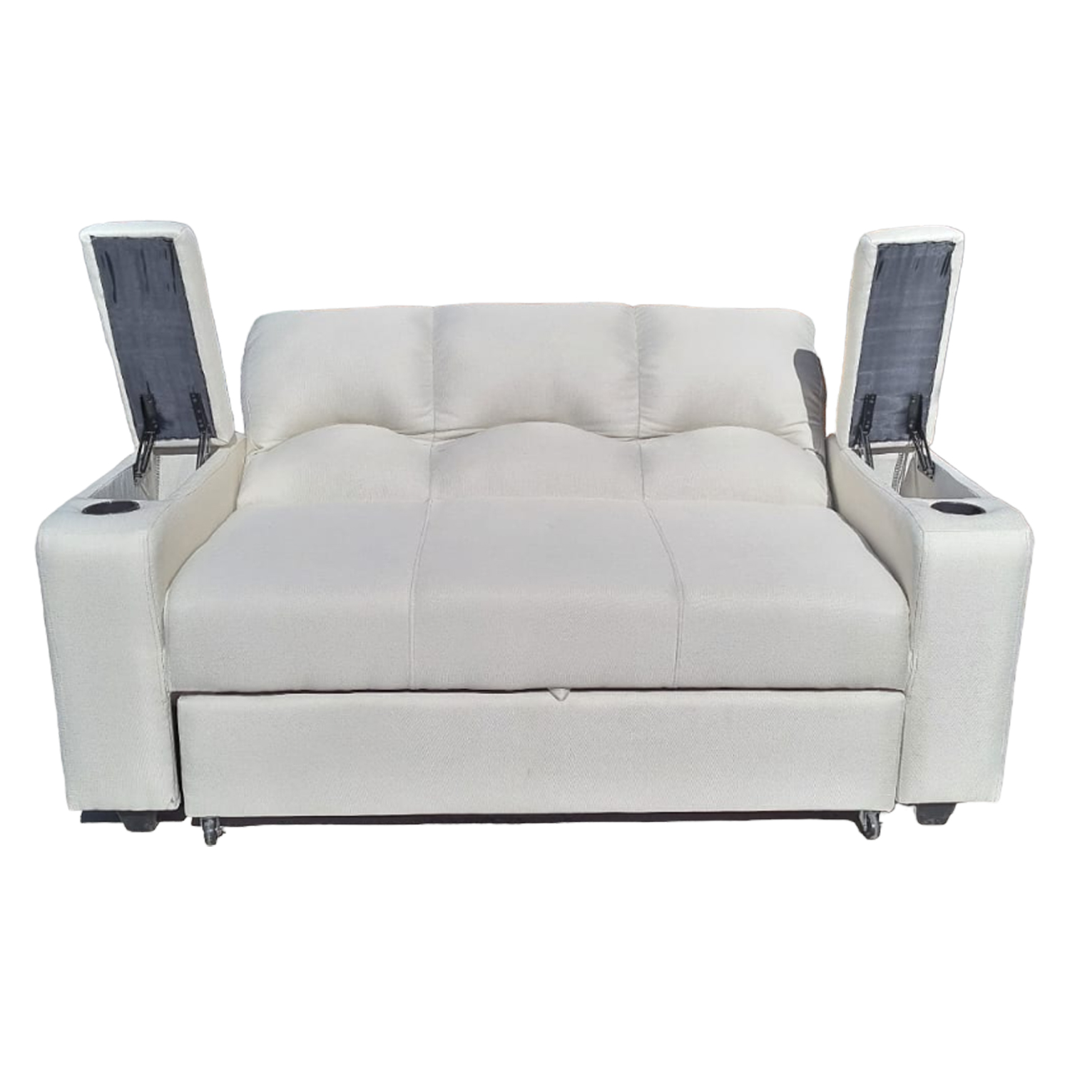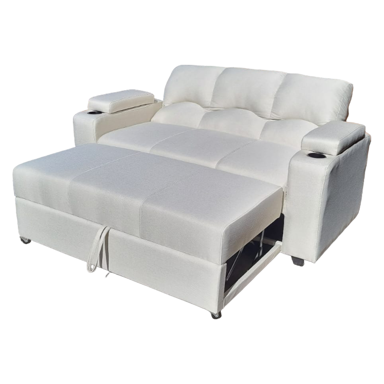 SOFA CAMA FUNCIONAL 2 PZ DECO LINO IMPERMEABLE CRUDO CON POSAVASO